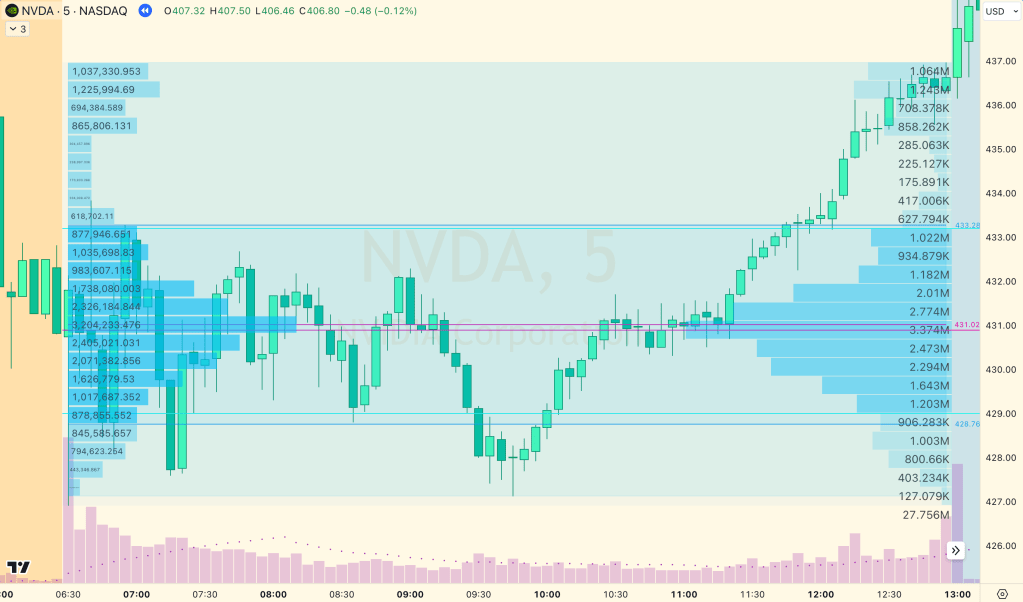 You can even write the volume in each of the 24 rows. For comparison, here’s a screenshot of my SVP (on the left) and TradingViews SVP (on the right).