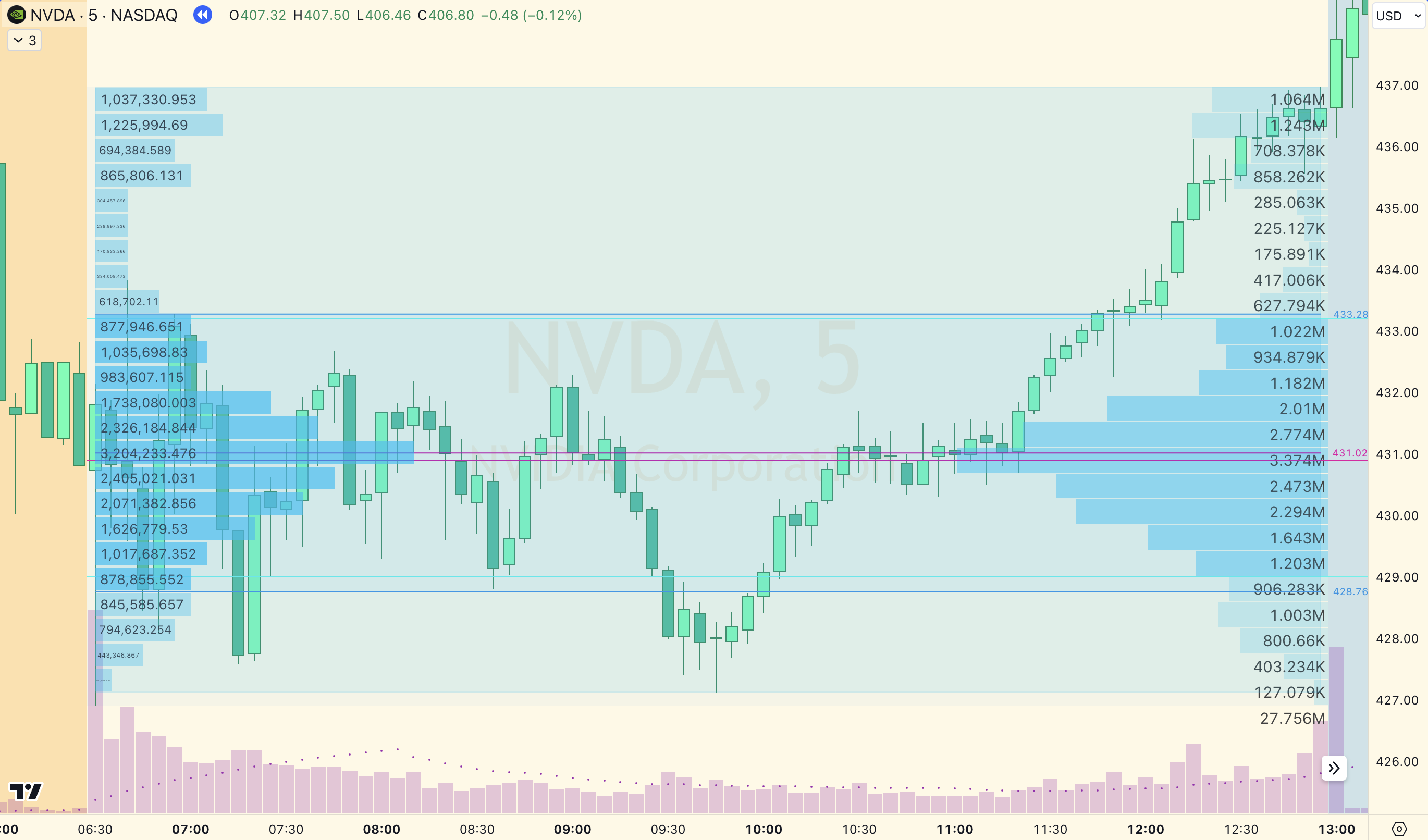 You can even write the volume in each of the 24 rows. For comparison, here's a screenshot of my SVP (on the left) and TradingViews SVP (on the right).
